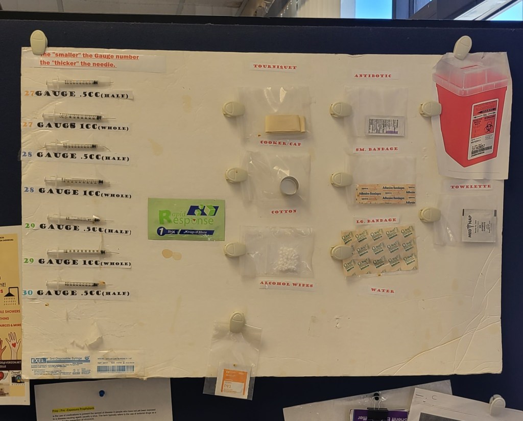 HRCs also serve to educate people on HIV, hepatitis, overdoses, and infectious diseases. At Oasis specifically, they give out socks, blankets, raincoats, and hygiene kits. They also have a shower, washer, and dryer for clients to use. One of the goals of Harm Reduction Centers is to provide a safe, trauma-informed, non-stigmatizing space to the community.